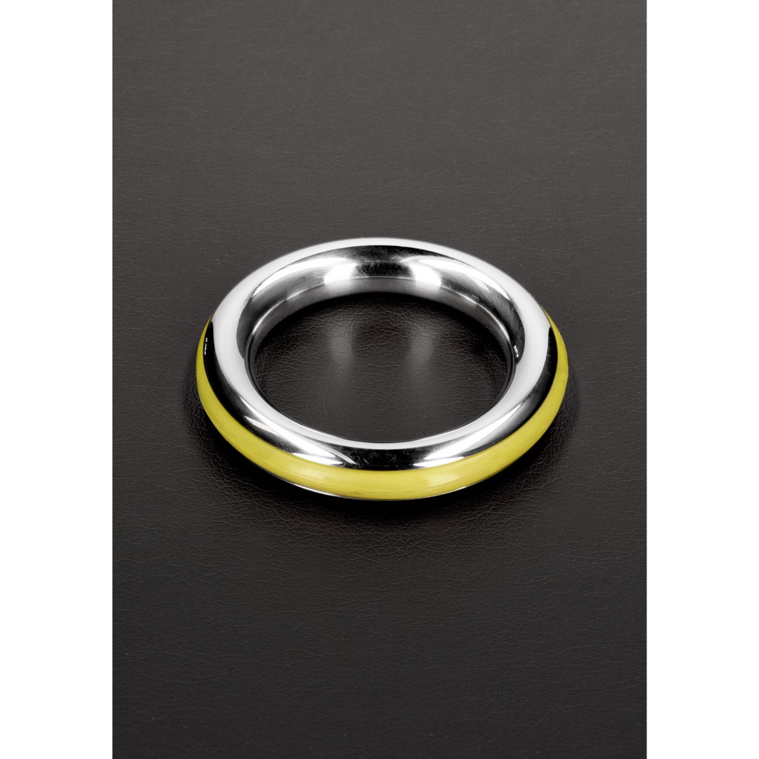 Fabricado em aço inoxidável, este anel para o pénis foi concebido a pensar no conforto e no estilo. Apresenta anéis de borracha de silicone embutidos, disponíveis nas cores vermelho, preto, azul e amarelo. Este anel ajuda a prolongar a ereção e acrescenta um toque especial de distinção.