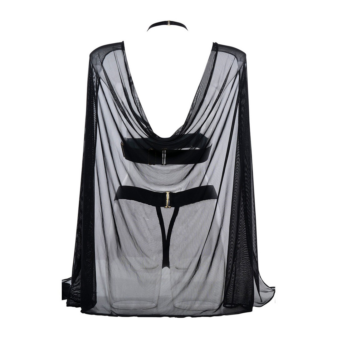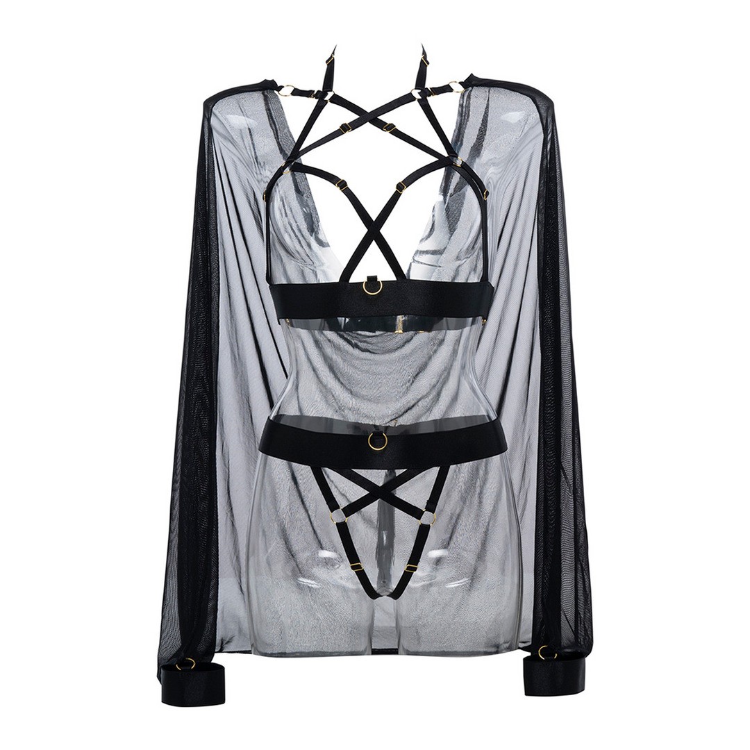 As coisas que se mostram e as coisas que se escondem. Irresistivelmente charmoso com atitude de flirt, o conjunto Sweet Little Lies é sedutor sem esforço. A capa de malha amovível com punhos decora o top de arnês ultra-strappy. As corrediças douradas permitem-lhe adaptar-se ao contorno do seu corpo. Tanga de alças totalmente aberta com corrediças douradas.