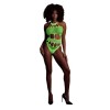 Body neon com decote grego ativado por UV, para um visual elegante e irresistível que destaca a sua silhueta.
