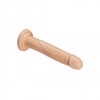 Dildo fino com 18 cm de comprimento, cabeça realista, veias e ventosa forte. É ideal para iniciantes ou para quem prefere uma penetração suave e segura.