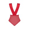 Bonito e clássico body num tom vermelho ardente, feito de renda e tule cintilante e brilhante.