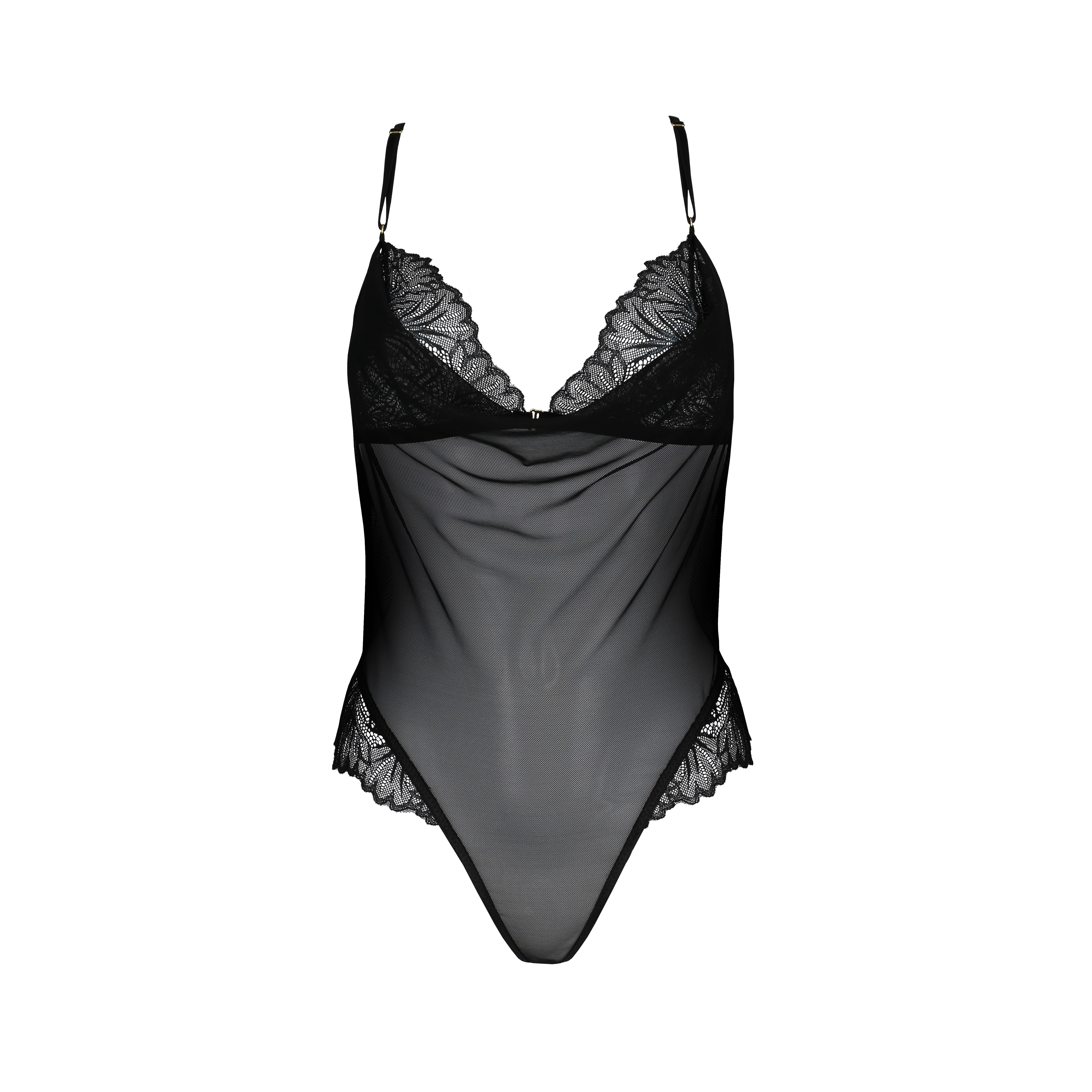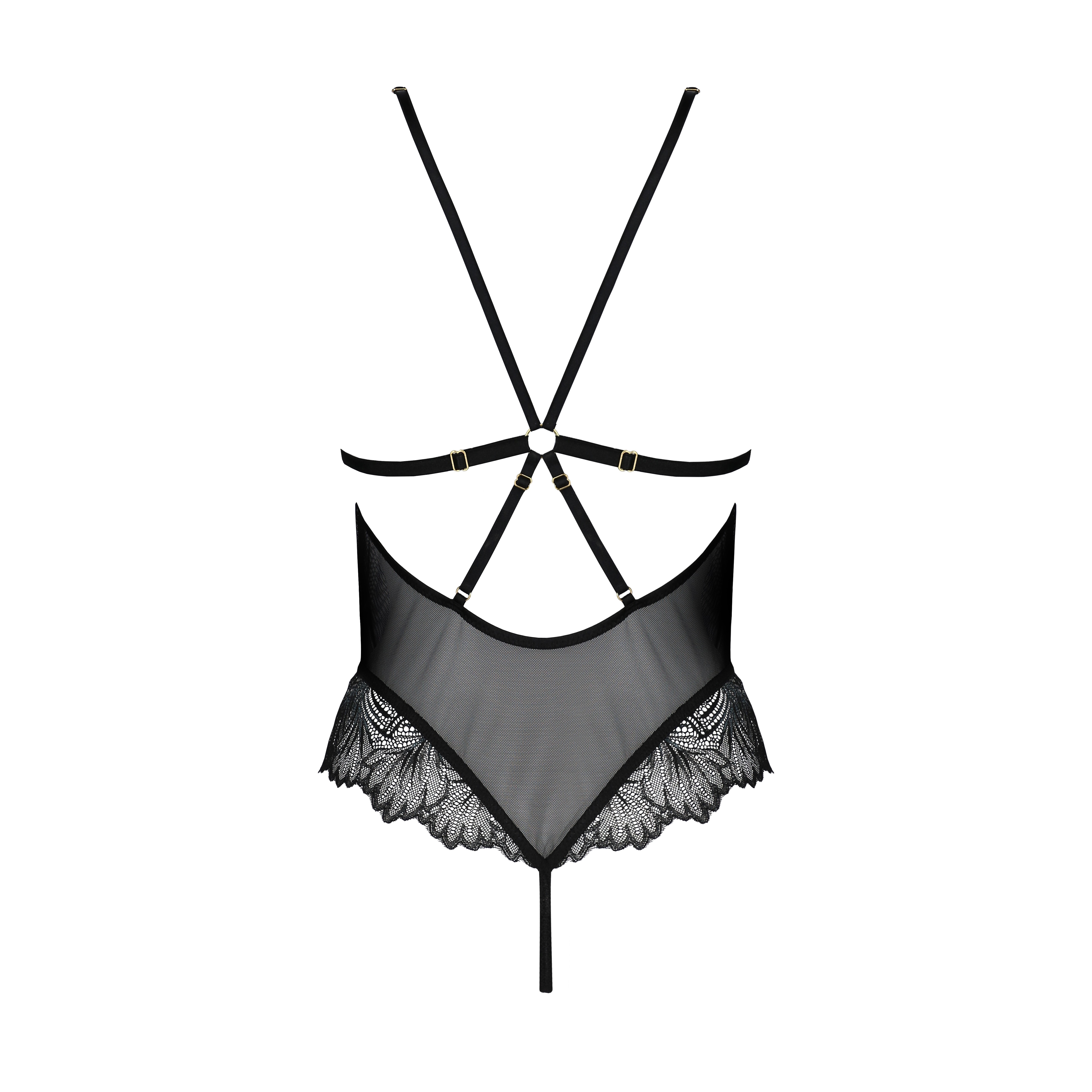 Um body deslumbrante com renda delicada que realça o decote, ajustando-se perfeitamente às formas femininas com elegância e sensualidade.