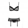 Composto por um sutiã, uma tanga e um cinto de ligas, este conjunto encanta com os seus detalhes sofisticados e tentadores.