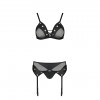 O conjunto de 3 peças Nessy da Passion inclui um sutiã elegante com argolas, uma tanga sofisticada e um cinto de ligas provocante. Produzido em tule preto e couro, realça a sensualidade feminina com um design requintado e detalhes encantadores. Ideal para ocasiões especiais, combina conforto e sedução em perfeita harmonia.