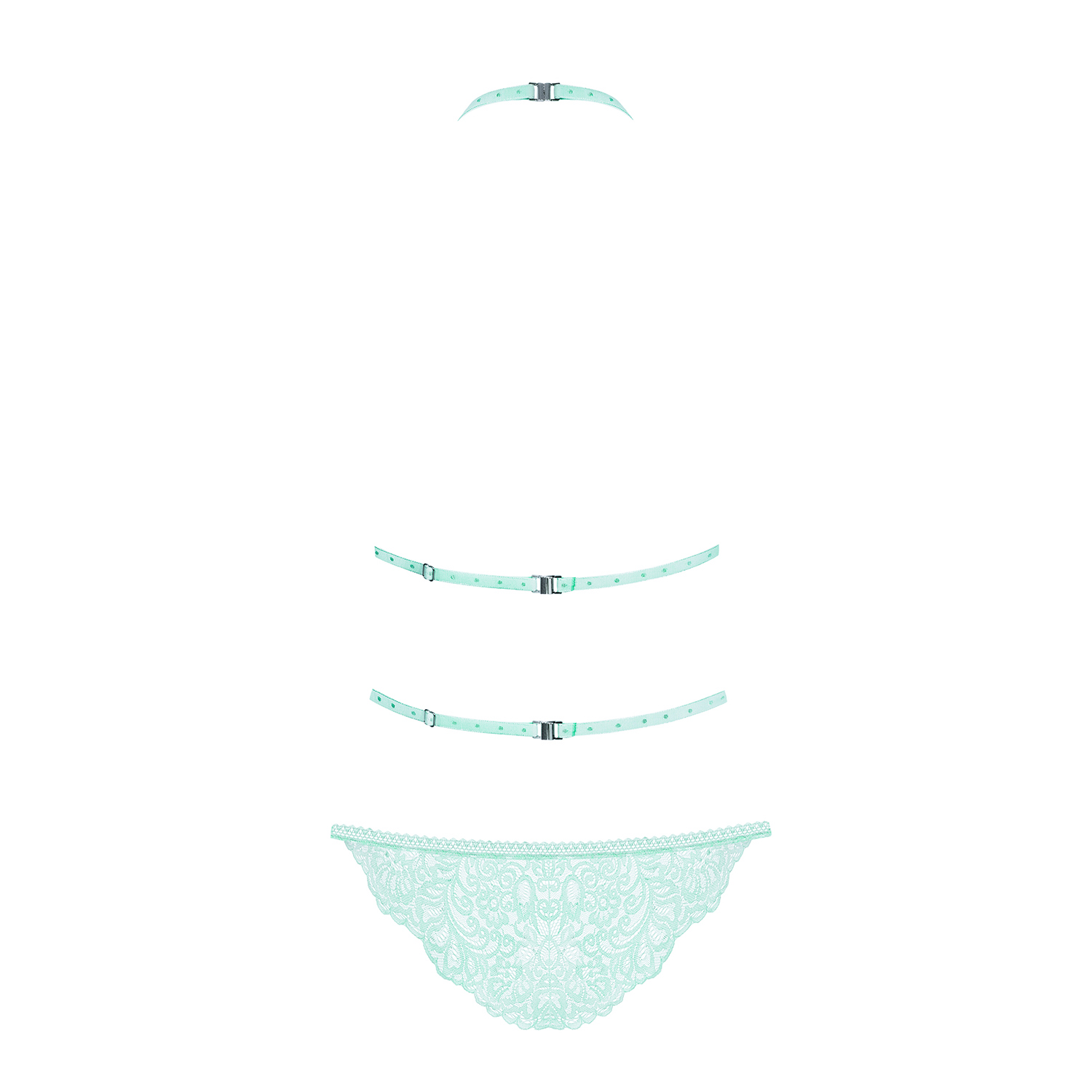 ¿Belleza de menta? ¡A su disposición! ¡Color unico y deslumbrante, diseño maravilloso y sensuales recortes! Todo esto en el super femenino body Delicanta. Bello visual y conforto total con un toque picante. ¿Lista para este sueño en encaje?