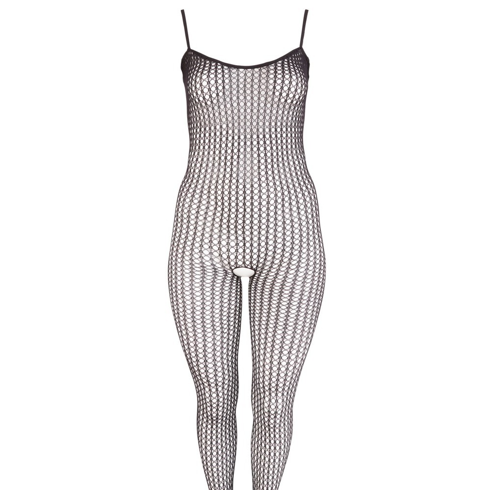 Чрезвычайно соблазнительный комбинезон из эластичной и прозрачной черной сетки, который провокационно облегает тело. Имеет привлекательное отверстие в области промежности и встроенные ножки, что гарантирует смелый и неотразимый вид.