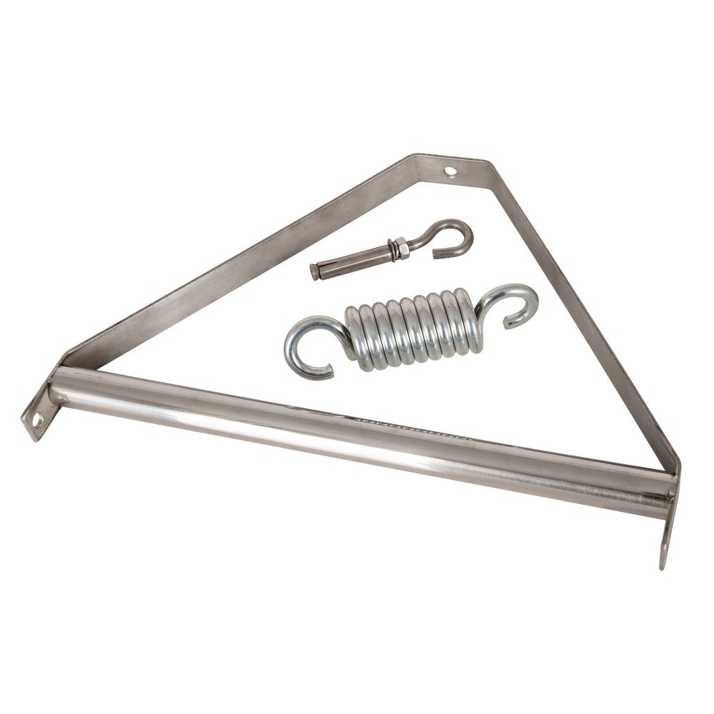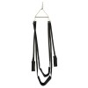 Черные сексуальные качели, состоящие из двух регулируемых ремней для тела и двух коротких ремней для ног. Ремни прикреплены к прочной металлической подвесной штанге с пружиной. Все кольца имеют мягкую обивку для большего комфорта.