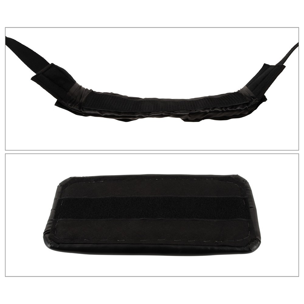 Мягкое сиденье и две откидные подушки для спины и головы/шеи, а также две плюшевые ручки для рук, ног или ступней подвешены на прочных ремнях, которые можно регулировать индивидуально. Сиденье можно снять благодаря застежке-крючку и петле.