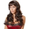 Высококачественный темно-коричневый искусственный парик с бахромой и слегка волнистыми кончиками.
