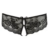Это очаровательное стринги сочетают в себе нежное кружево с цветочным узором и вырезы спереди и сзади, украшенные маленькими бантиками. Соблазнительно открытая промежность покрыта только двумя эластичными полосками. Благодаря высокому содержанию спандекса стринги чрезвычайно удобны и повторяют женские изгибы.