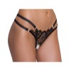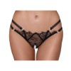 Стринги от Cottelli LINGERIE изготовлены из нежного кружева с бахромой, под которым иногда находится подкладка. Эластичные двойные резинки украшены 4 блестящими стразами. Сзади имеется эластичная вставка для идеальной и удобной посадки. В области промежности имеется привлекательный вырез.