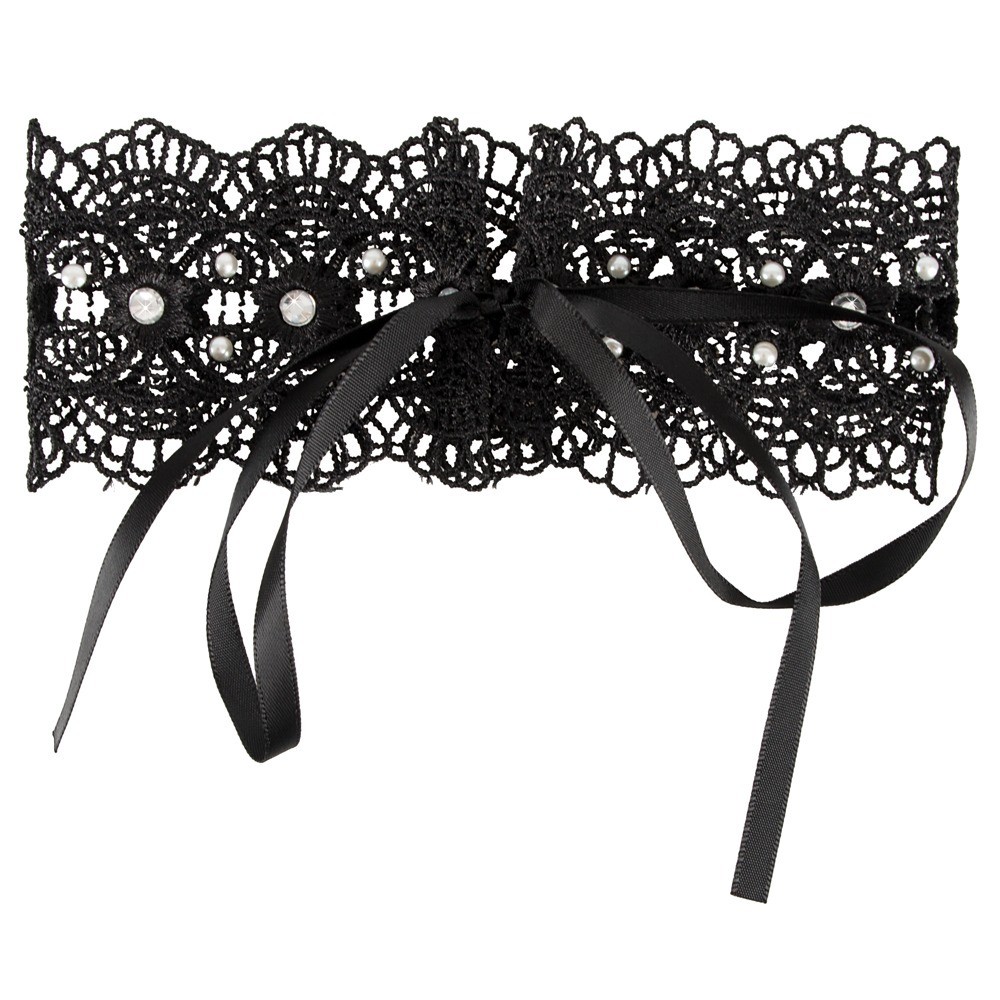 Черный вышитый чокер, украшенный белым жемчугом и стразами. Сзади есть атласная лента, чтобы связать чокер вместе.