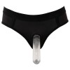 Черные трусы-страпон от Bad Kitty, изготовленные из мягкой и эластичной микрофибры, которая идеально облегает тело. Двухслойная передняя часть имеет отверстие со встроенным эластичным кольцом (Ø 3,5 см), идеально подходящее для крепления аксессуаров с присоской, что обеспечивает функциональность и комфорт.