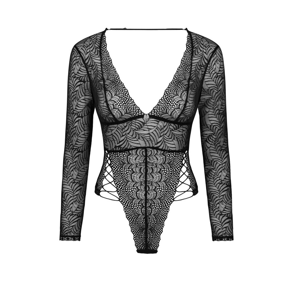Это кружевное боди имеет необычный и привлекательный узор, который привлекает все взгляды. Сенсуальный дизайн включает застежку между ног, завязку на бедрах в качестве соблазнительного акцента и элегантную подвеску между грудями. Ремешок на спине регулируется и снимается, обеспечивая идеальную посадку, а ткань создает мягкое и комфортное ощущение на теле.