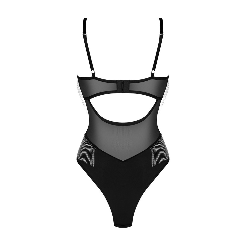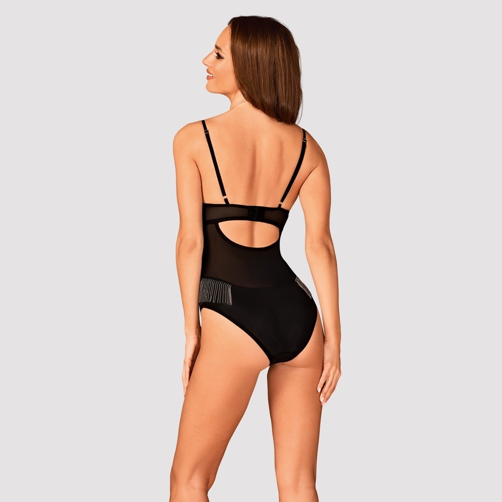 Боди Milladis — это предложение для уверенных в себе женщин, которые любят чувственное и оригинальное белье. Бюстгальтер с косточками подчеркивает грудь и декольте, а нежные ряды серебристых бусин под грудью добавляют нотку гламура. Слегка прозрачная ткань пробуждает воображение. Регулируемые бретели, удобная застежка на спине и регулируемая застежка между ног обеспечивают комфорт и идеальную посадку.