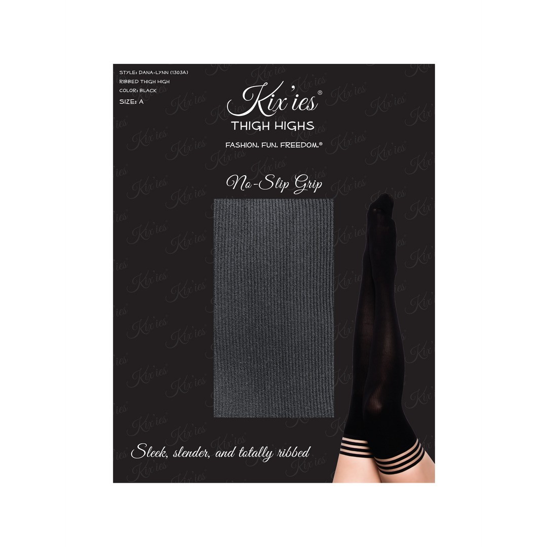 Черные ребристые чулки Kix'ies - идеальный вариант на каждый день, особенно в холодное время года! Классические черные непрозрачные чулки обеспечат вашим ногам комфорт и стиль круглый год. Благодаря нескользящему манжету чулки Kix'ies с высокой посадкой на бедрах удобно носить в течение всего дня.