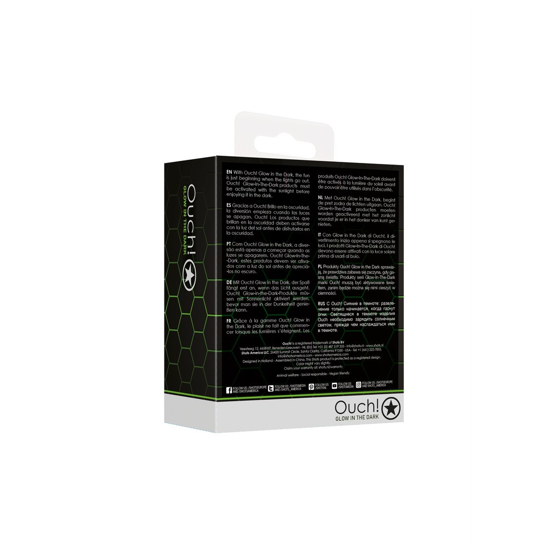 Ой! Glow in the Dark - будущее бондажа уже здесь. Флуоресцентные зеленые детали, выполненные в аутентичной эстетике бондажа, но с дополнительным эффектом свечения в темноте, превратят любое мероприятие в событие. С Ouch! Glow in the Dark веселье только начинается, когда гаснет свет. Приготовьтесь к новым ощущениям с этим мешком-мячом. Этот предмет очень гибкий, что открывает перед вами массу возможностей. Он также поможет предотвратить преждевременную эякуляцию.⯠Ouch!â¯Glow-In-The-Dark⯠продукты должны быть активированы солнечным светом, прежде чем наслаждаться ими в темноте.