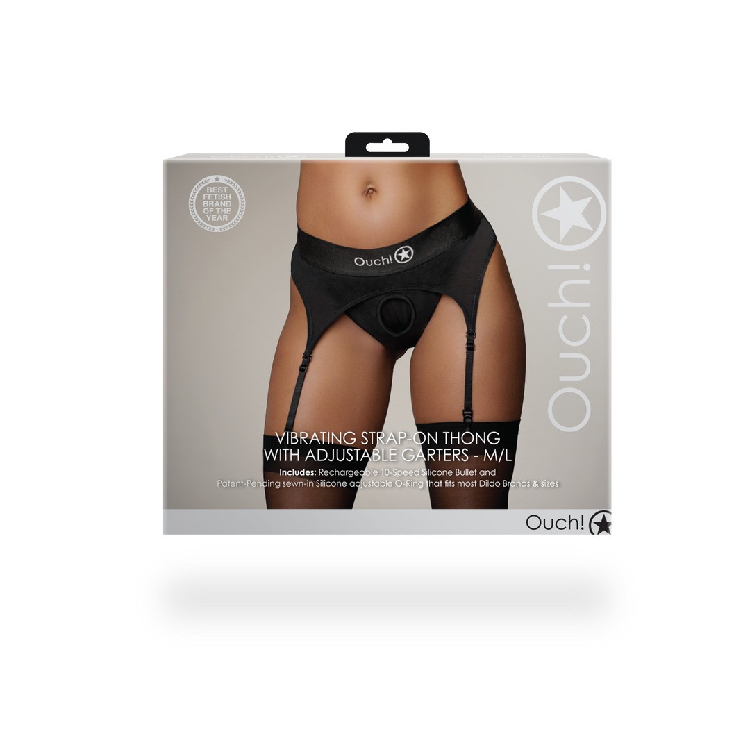 VIBRATING STRAP-ON THONG WITH ADJUSTABLE GARTERS - BLACK