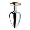 Металлическая анальная пробка с драгоценным камнем "тигровый глаз" для уверенности, удовольствия и разнообразных тепловых ощущений.