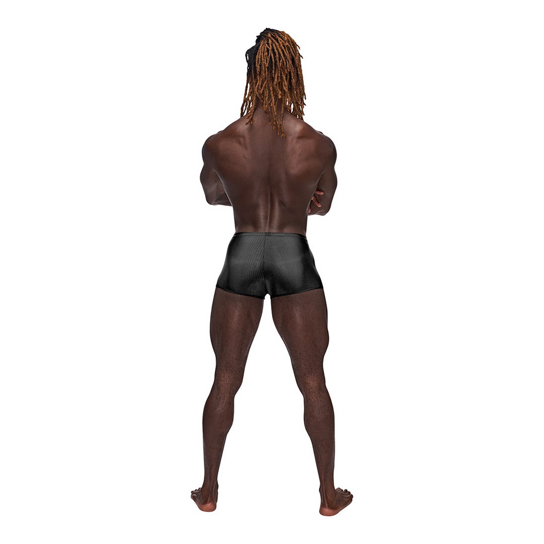 Мини-шорты из коллекции Barely There от Male Power отличаются заниженной талией, высоким разрезом на ногах и облегающей грудью.