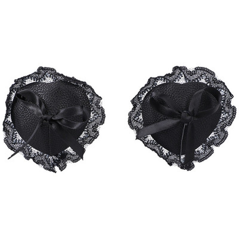 Прикройте только самое необходимое с помощью этих чувственных черных накладок для сосков из веганской кожи и кружева.