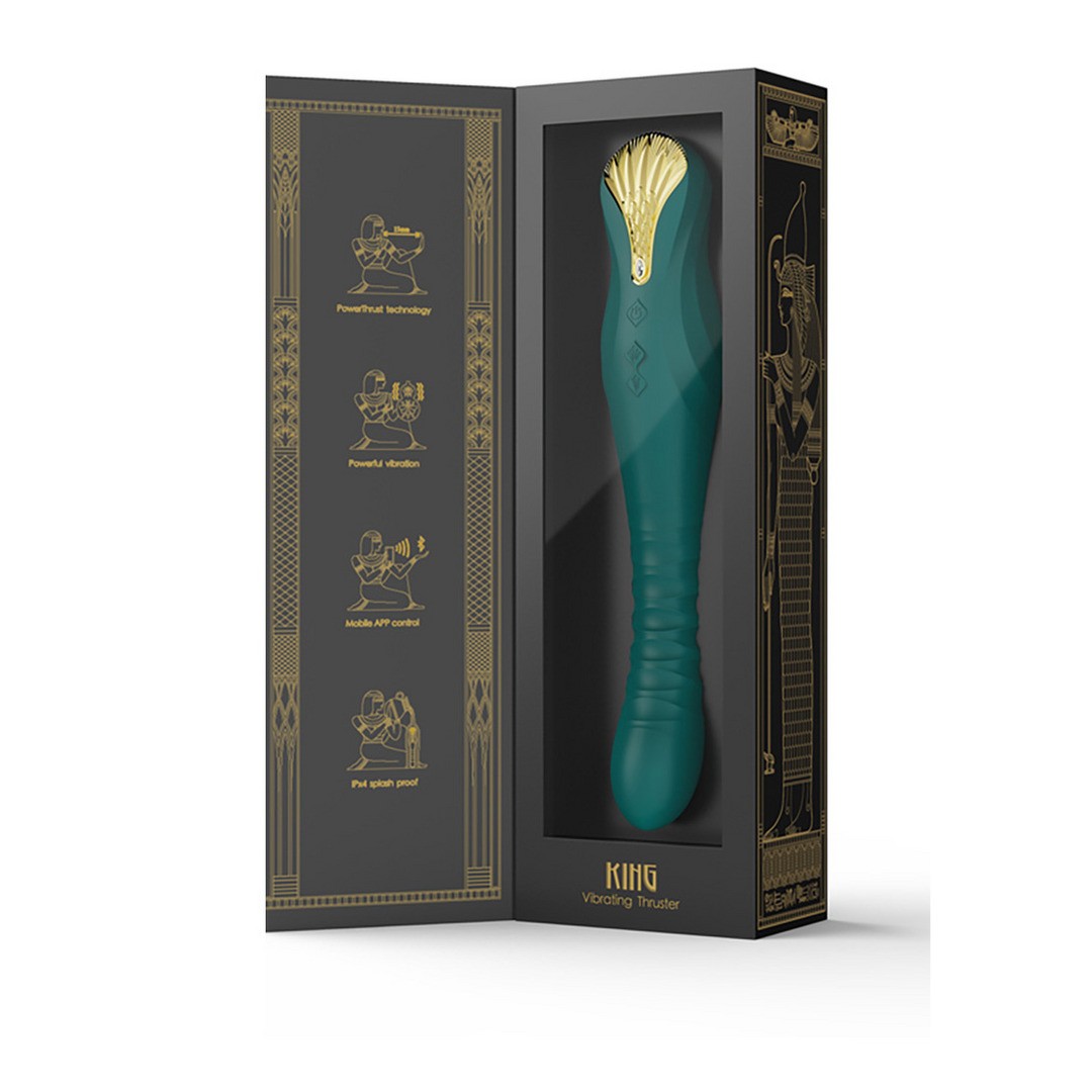 KING от ZALO сочетает в себе технологию PowerThrust и роскошный египетский дизайн с кристаллами Swarovski, обеспечивая мощные импульсы для интенсивных оргазмов.