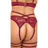 Соблазнительный комплект Abierta Fina, состоящий из бюстгальтера с открытыми чашками и стрингов с подвязками без промежности. Нежное кружево темно-красного цвета подчеркивается бархатными бретелями и аксессуарами в оттенке розового золота, создавая утонченный и провокационный образ. Материал мягкий и эластичный, что обеспечивает комфортную посадку.