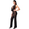 Красивый черный комбинезон от Noir изготовлен из красивого и блестящего powernet. Он возбуждающе прозрачный. Комбинезон имеет длинные штанины. У него очень глубокий вырез. Благодаря вырезу халтер, плечи и спина остаются открытыми. Мягкий и эластичный для очень удобной посадки.