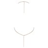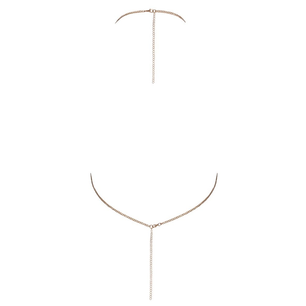 Топ-цепочка золотого цвета от Cottelli ACCESSOIRES частично украшен стразами. Элегантное украшение имеет застежку-крючок на шее и сзади для регулировки топа. Остальная часть спины оголена. Его можно носить на голое тело, чтобы выглядеть стильно и эротично. Блестящую цепочку можно также носить со стильными купальниками или облегающими нарядами.