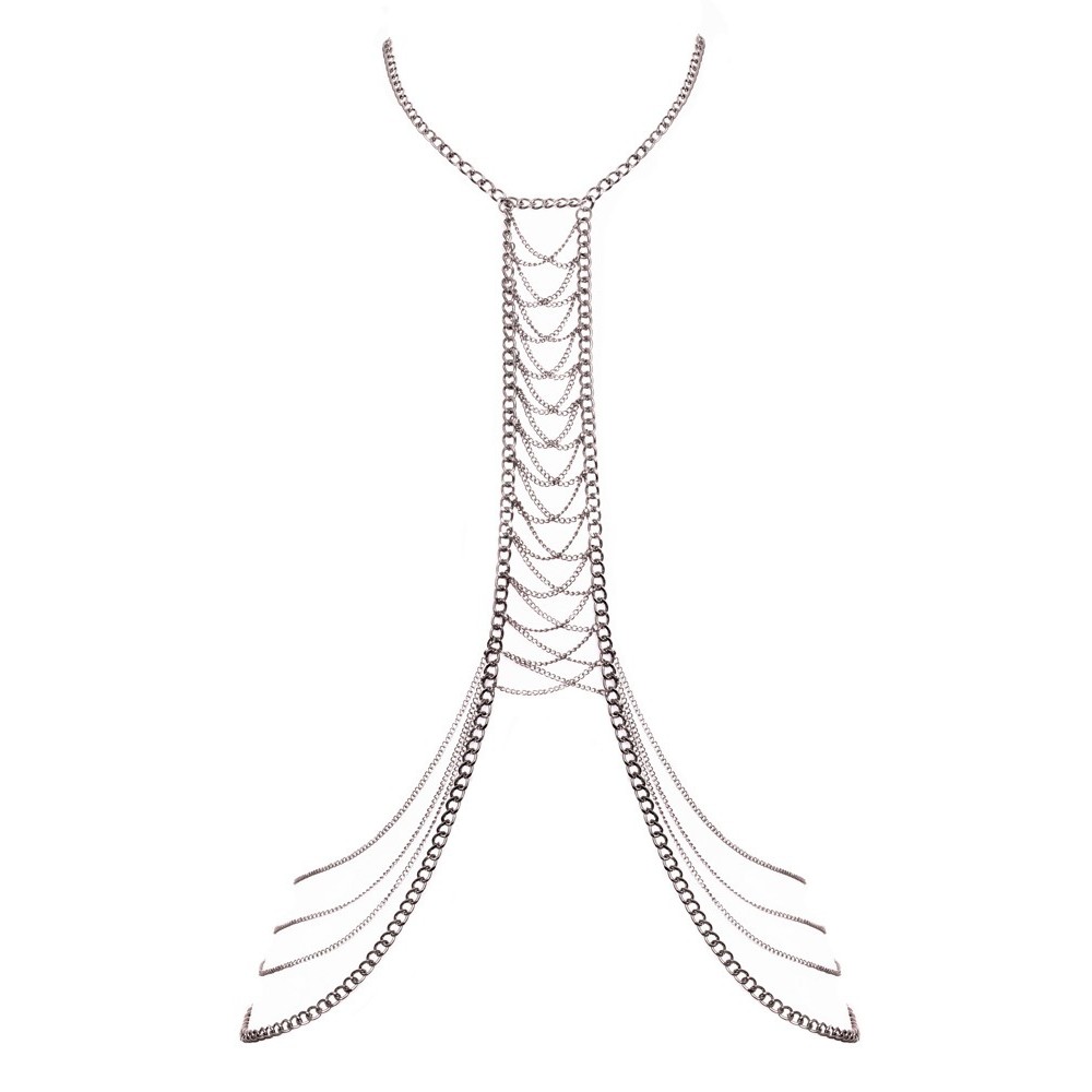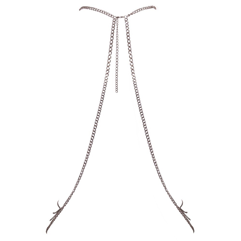 Серебряная цепочка для тела от Cottelli ACCESSOIRES украшена роскошной цепочкой между грудей и на бедрах. На шее сзади есть застежки для регулировки. Его можно носить самостоятельно в качестве эротического белья или вместе с облегающими купальниками в качестве красивого дополнения - гламурный декор привлекает внимание!
