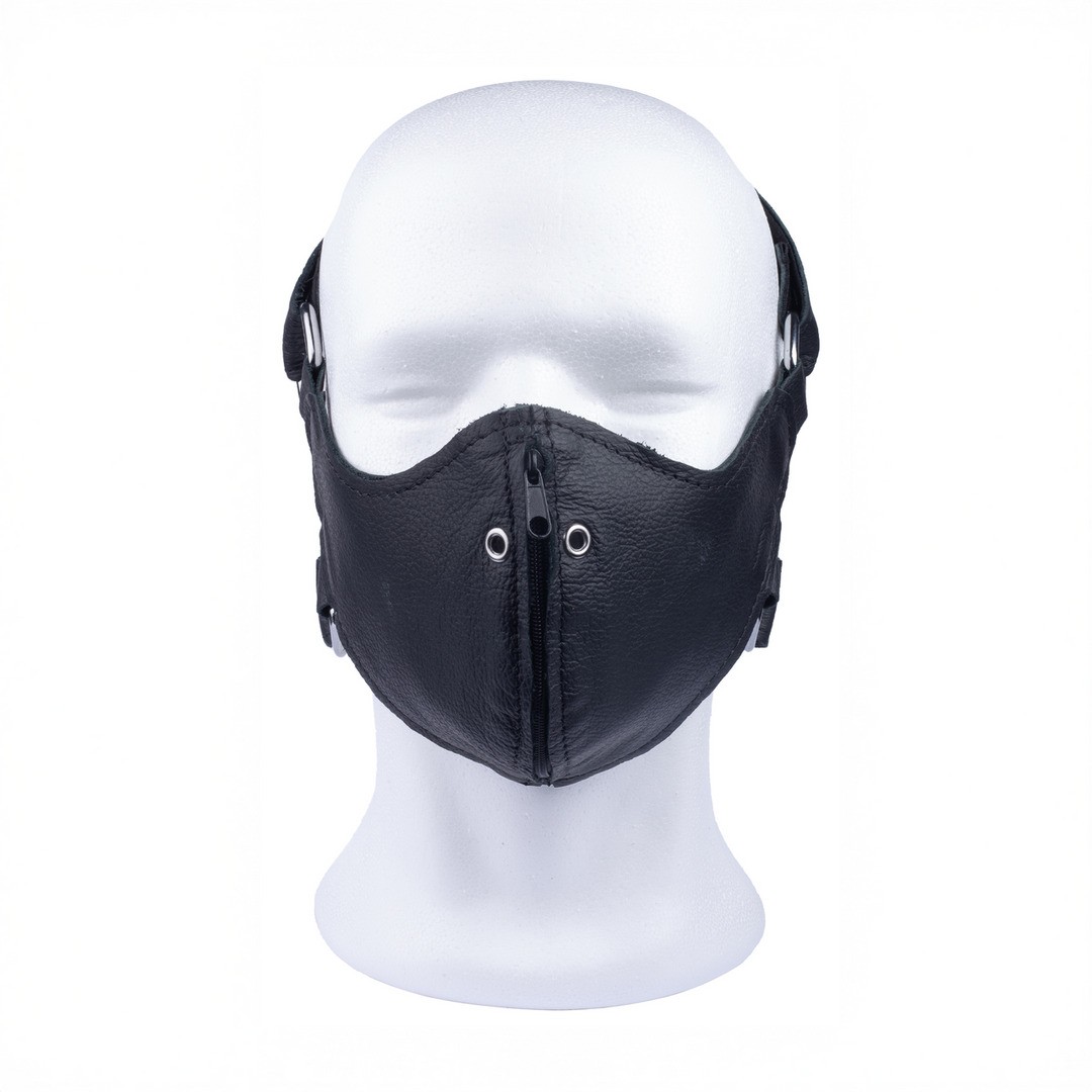 Кожаная маска, предназначенная для скрытия половины лица, создавая дискретный и провокационный визуальный эффект.